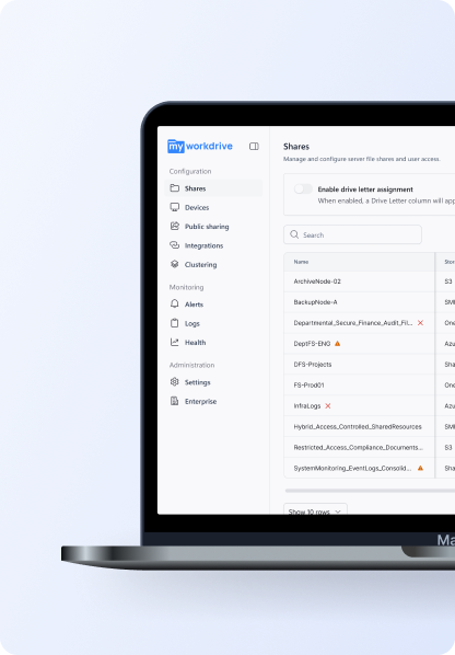 Deploy MyWorkDrive on your own infrastructure. Keep control of your files with no forced cloud migration, sync requirements, or proprietary storage formats.